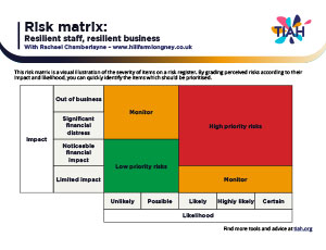 A risk matrix is a visual guide for prioritising items which have been entered on a risk register.